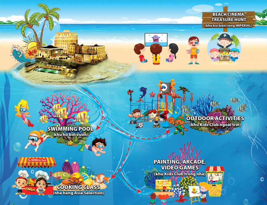 Vương quốc dành cho các bạn nhỏ, bao gồm khu vực ngoài trời và trong nhà, từ những trò truyền thống như cầu trượt, xích đu cho đến những trò chơi mới lạ như đệm nhún, nhà banh, vượt chướng ngại vật, nặn đất, tô tượng,… Tất cả đều có sự hướng dẫn và giám sát của đội ngũ nhân viên IMPERIAL