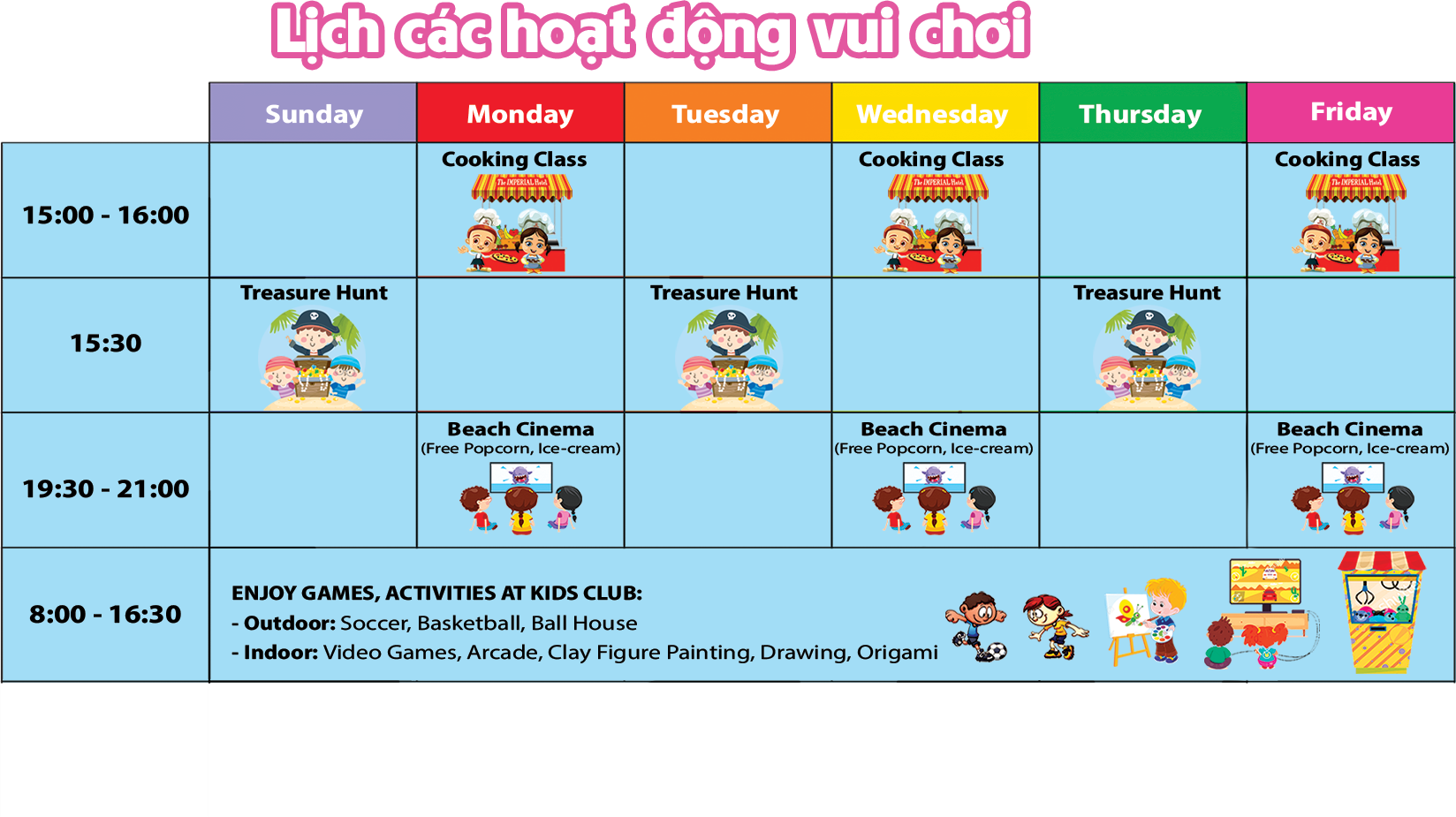 Lớp học nấu ăn thú vị do chính bếp trưởng của The IMPERIAL trực tiếp hướng dẫn. Ba mẹ sẽ cực kì mong chờ những món ăn mà các con tự tay chế biến, tuy có hơi vụng về nhưng thật đáng yêu.